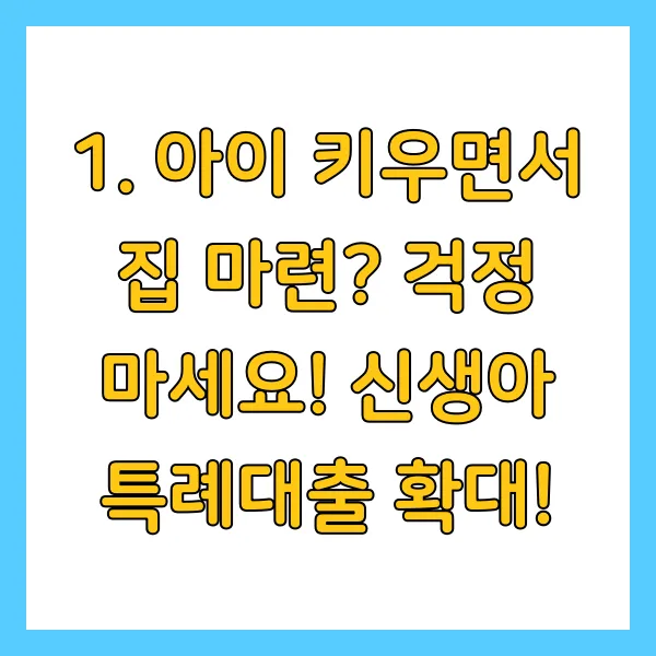 1. 아이 키우면서 집 마련? 걱정 마세요! 신생아 특례대출 확대!